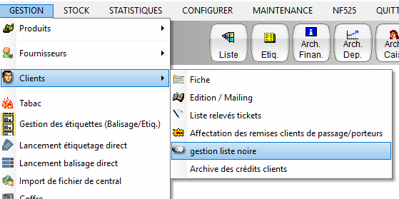 Aller dans le menu GESTION - CLIENTS - GESTION LISTE NOIRE
