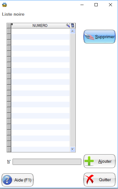 Cette fenêtre permet de gérer une liste noire de compte de chèque interne à votre magasin