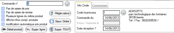 - Info Commande : Affiche les informations relative au fournisseur.