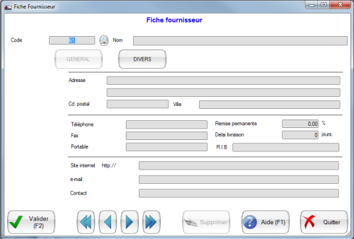 C'est a partir de cette écran qu'il est possible de consulter ou de modifier les fiches Fournisseurs.