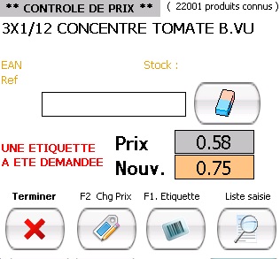 Lancer l'application Store-Pos sur le portable puis sélectionner le menu Etique. Ctrl prix.