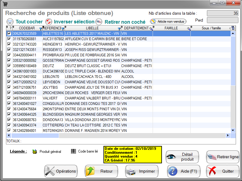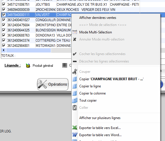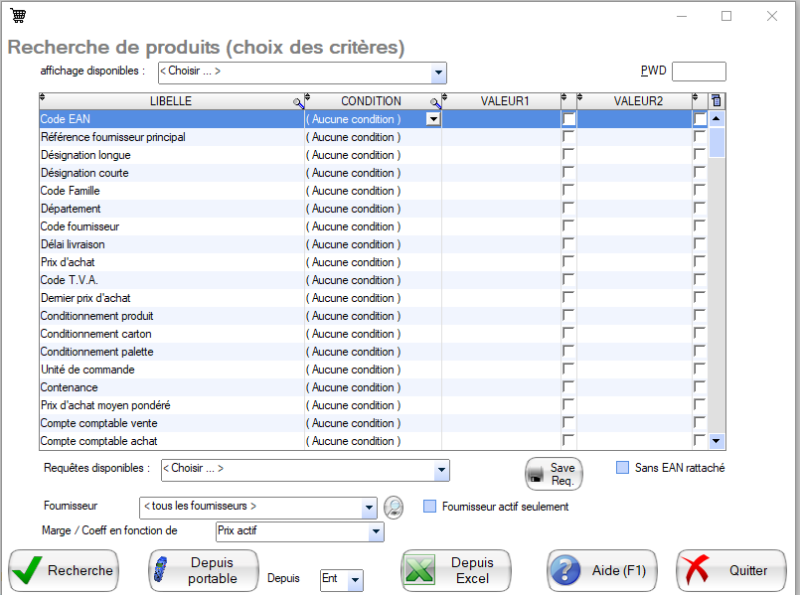 Entrez les critères des produits que vous souhaitez afficher dans la fenêtre ci dessous.