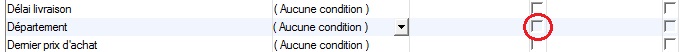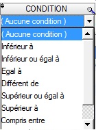 En cliquant sur la colonne CONDITION, dans la ligne voulue, un bouton apparaît et vous donnes accès a un choix de condition: