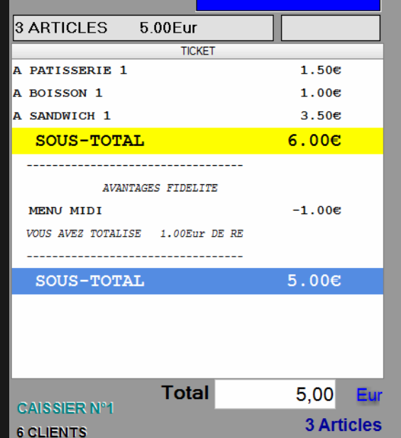 -Remise immédiate en montant, sur le ticket comme mon exemple.