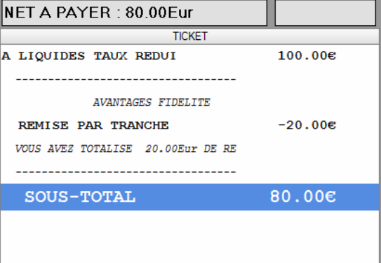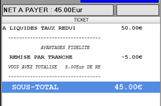 Cette opération est simple à mettre en place, ce sont des remises par tranche de montant atteints en caisse, on peut par exemple dire que si le ticket du client atteint un certain montant, il aura tant de remise %, on peut mettre plusieurs tranches voir détail.