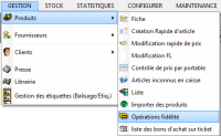 Pour afficher ou créer une opération fidélité, sélectionnez le menu “GESTION - Produits - Opérations fidélité” :