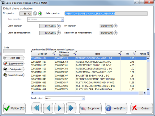 Selon l'opération il est possible d'affecter un code EAN, une famille, un département ou tout les produits.