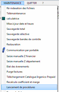 Sélectionnez le menu “MAINTENANCE - Lancement de procédures” :  .
