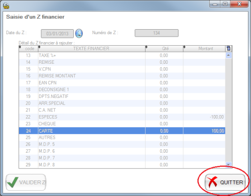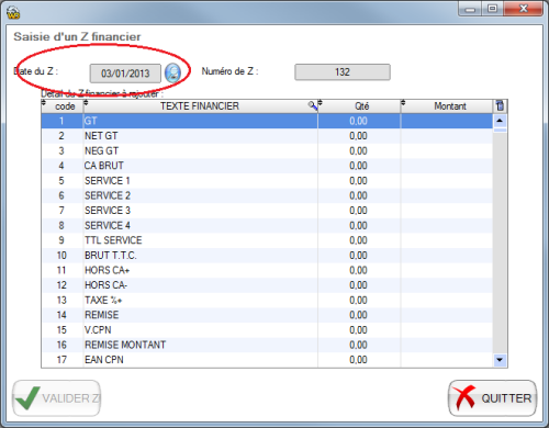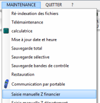Maintenant sélectionnez le menu “MAINTENANCE - Saisie manuelle Z financier” :