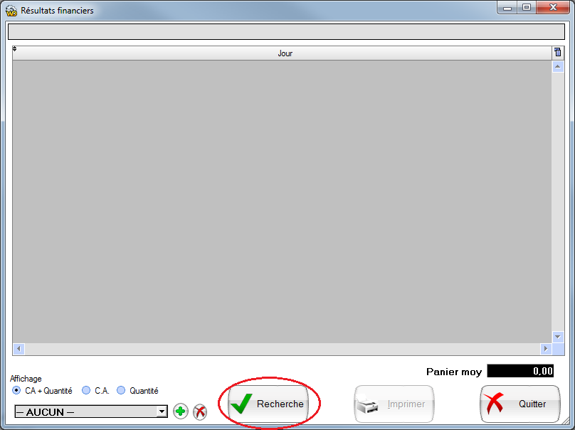 Cliquer sur « rechercher » Saisie manuelle des résultats Page 4 sur 14 SAS au capital de 160 000 € – SIRET 401 222 286 00031 – Code APE 524Z – N° TVA intracommunautaire : FR7840122228600031 Sélectionner « une date » est saisissez la date souhaité. Pour notre exemple : le « 09/08/2006 ». Cliquer ensuite sur « Choisir ». Prenons comme exemple la colonne « ESPECES » ou nous avons « 22.35 » et « CHEQUE » « 100 » Saisie manuelle des résultats Page 5 sur 14 SAS au capital de 160 000 € – SIRET 401 222 286 00031 – Code APE 524Z – N° TVA intracommunautaire : FR7840122228600031 Maintenant allons sur l’onglet « MAINTENANCE » puis sélectionnons « Saisie manuelle Z financier ». Sélectionner la date du Z. Pour notre exemple c’est le « 09/08/2006 » : Saisie manuelle des résultats Page 6 sur 14 SAS au capital de 160 000 € – SIRET 401 222 286 00031 – Code APE 524Z – N° TVA intracommunautaire : FR7840122228600031 Pour notre exemple nous allons passer 100 € de chèque en espèces. Pour cela : Dans la ligne 22 « ESPECES » saisissons « 100 ». Saisie manuelle des résultats Page 7 sur 14 SAS au capital de 160 000 € – SIRET 401 222 286 00031 – Code APE 524Z – N° TVA intracommunautaire : FR7840122228600031 Et dans la ligne 23 « CHEQUE » saisissons « -100 » Cliquons sur le bouton « Valider ». Nous pouvons réaliser ce type d’opération pour toutes les lignes présentes dans ce tableau. La colonne « Qté » permet d’ajouter des articles vendus. Saisie manuelle des résultats Page 8 sur 14 SAS au capital de 160 000 € – SIRET 401 222 286 00031 – Code APE 524Z – N° TVA intracommunautaire : FR7840122228600031 Le message ci-dessous s’affiche : Cliquez sur « Oui ». Cliquez sur « ok ». Puis cliquer sur le bouton « Quitter ». Saisie manuelle des résultats Page 9 sur 14 SAS au capital de 160 000 € – SIRET 401 222 286 00031 – Code APE 524Z – N° TVA intracommunautaire : FR7840122228600031 Retournons dans « STATISTIQUES » puis « Résultats archivé » et enfin « Tableau de bord financier », sélectionnons la date du 09/08/2006 : Dans la colonne « ESPECES », nous n’avons plus « 22,35 » mais bien « 122,35 » soit les 100 € que nous venons de rajouter. De plus la colonne « CHEQUE » a disparu car le résultat est à zéro. ATTENTION : Par contre toutes les autres colonnes ne sont pas modifiées !