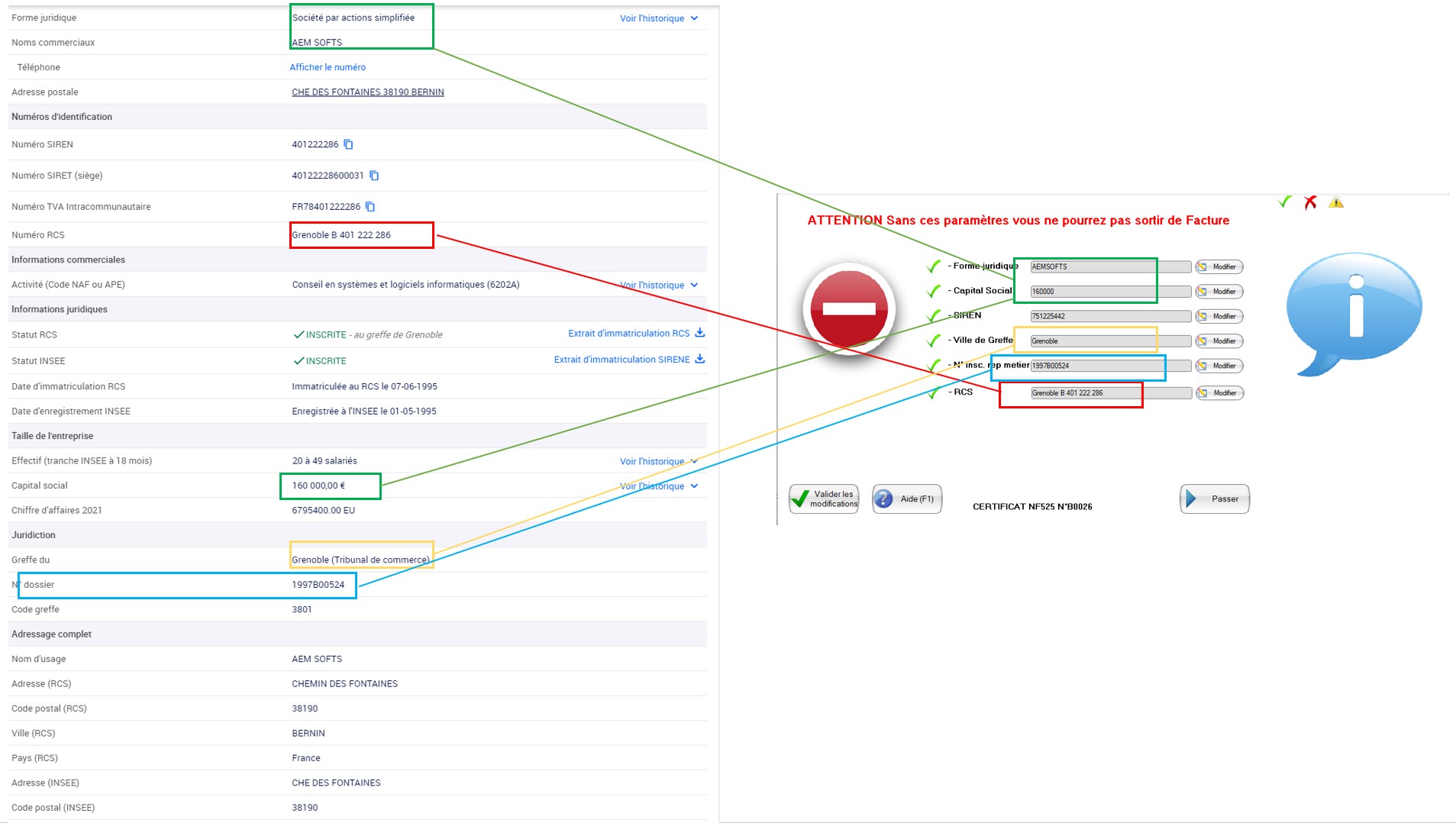L'absence de ces informations bloquera la possibilité d'éditer des factures normalisées en caisses.
