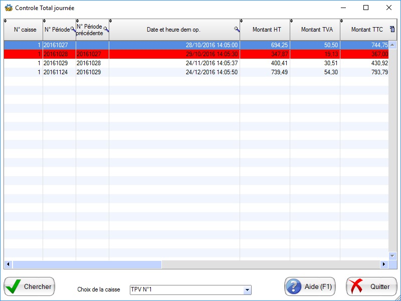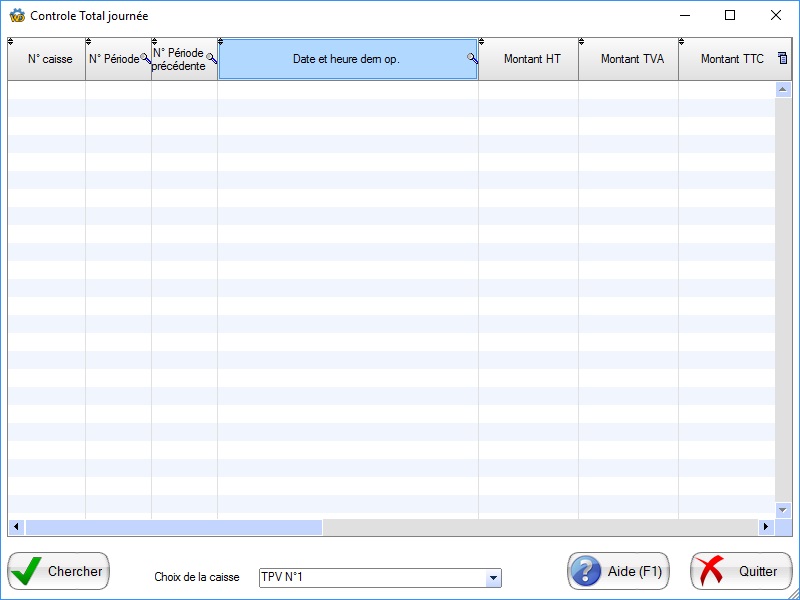 Pour lancer un contrôle des signatures fiscales sur vos données de grands totaux journée sélectionnez le menu