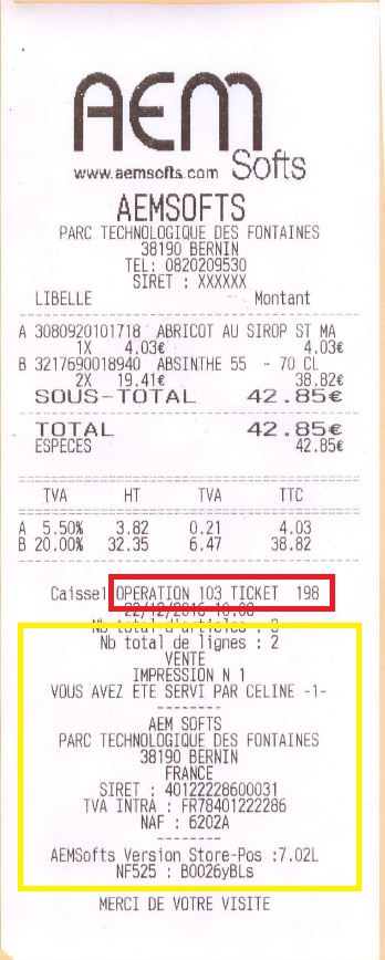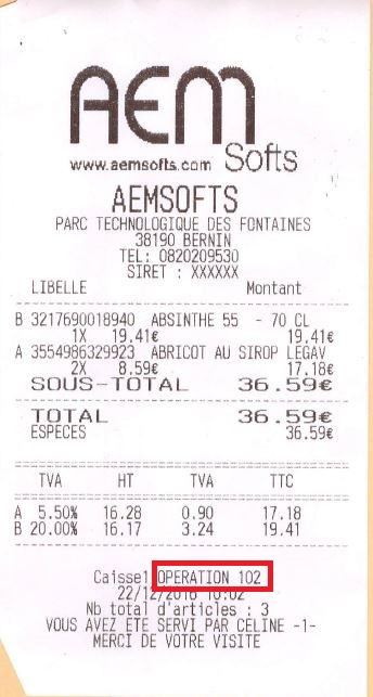 - Nouveaux tickets de caisses (si le ticket n'est pas NF525 ou ticket de trésorerie) pas de notion de “Ticket” dessus seulement “opération”