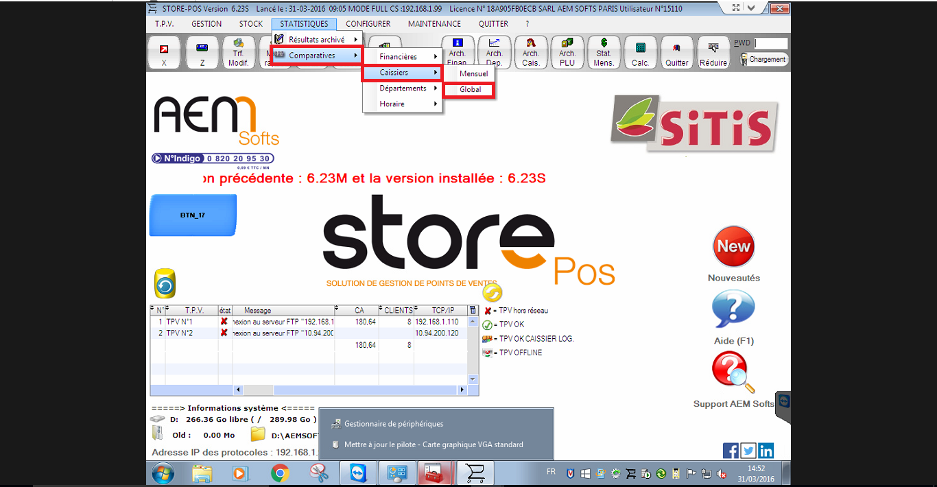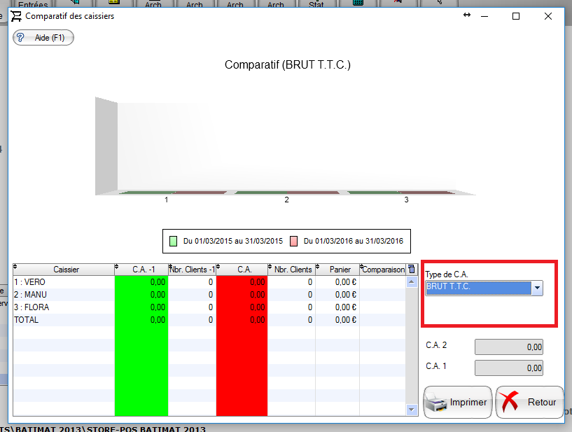 1: Aller dans Statistiques puis Comparatives puis Caissiers puis Global.