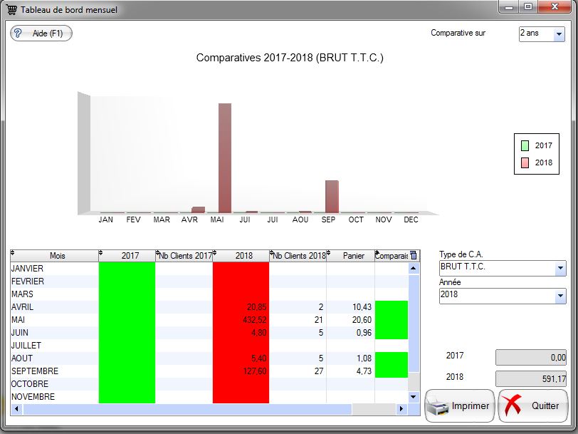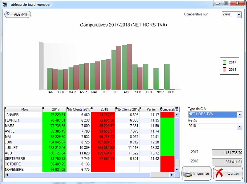 Vous obtiendrez ainsi les comparatifs (EN CA et nombre de clients) sur la période demandée.