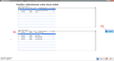 STOCK INITIAL : Vous choisissez ici le stock initial à comparer. Veuillez vous référer à la Capture d'écran N°2 si besoin.