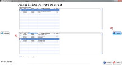 STOCK FINAL : Vous sélectionnez ici le stock final à comparer au stock initial. Veuillez vous référer à la Capture d'écran N°3 si besoin.