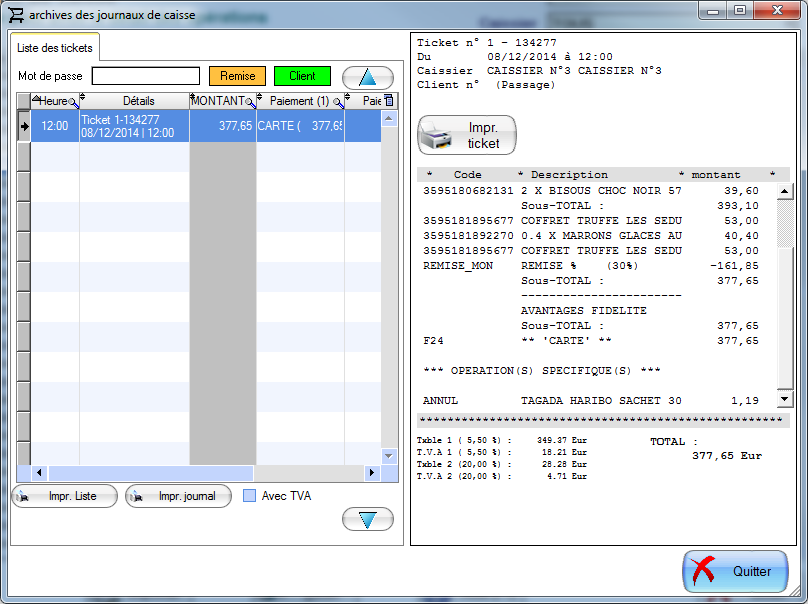 Vous pouvez afficher le ticket avec les opération spécifiques qui le concerne en double-cliquant (gauche) sur la ligne concernée