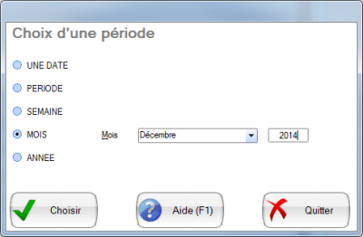 Appuyez sur le bouton  pour afficher les résultats des opéraitons caissier sur une période.