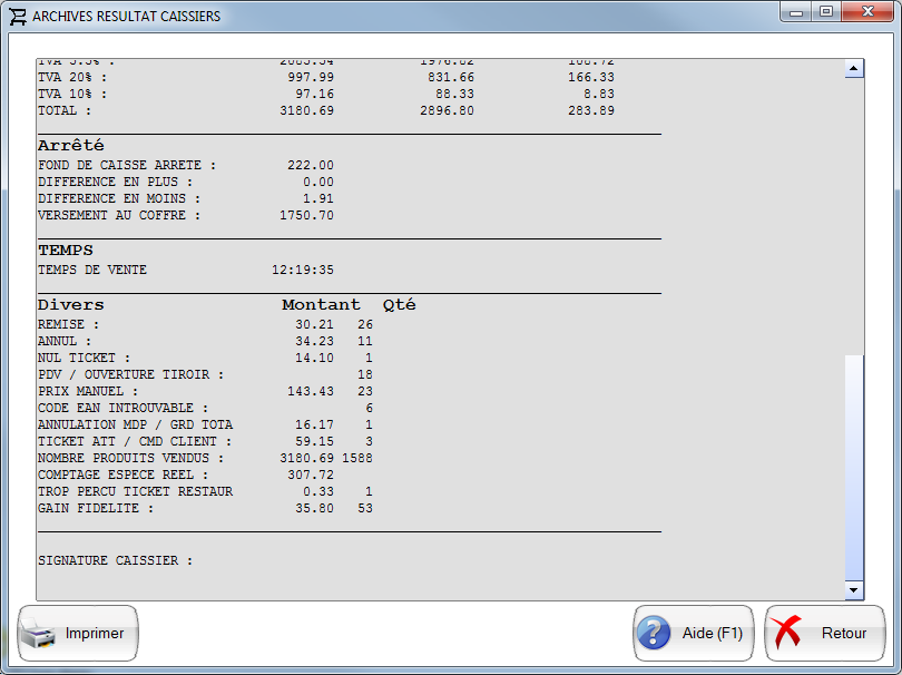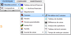 Pour accéder aux rééditions de Z caissier sélectionnez le menu STATISTIQUES - Résultats archivé - Caissiers - Ré-édition de Z caissiers