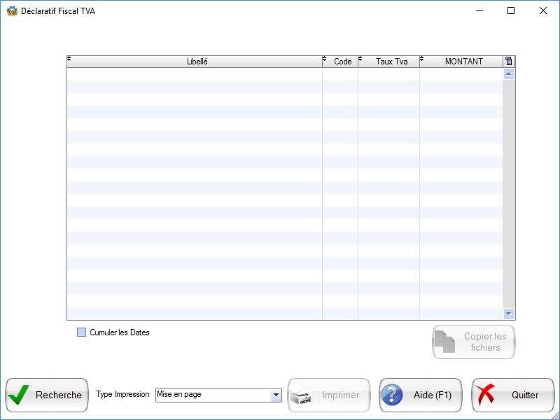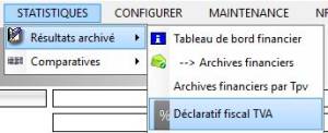 On accède aux déclaratifs fiscal TVA via le menu STATISTIQUES→Resultats archivé →Déclaratif fiscal TVA