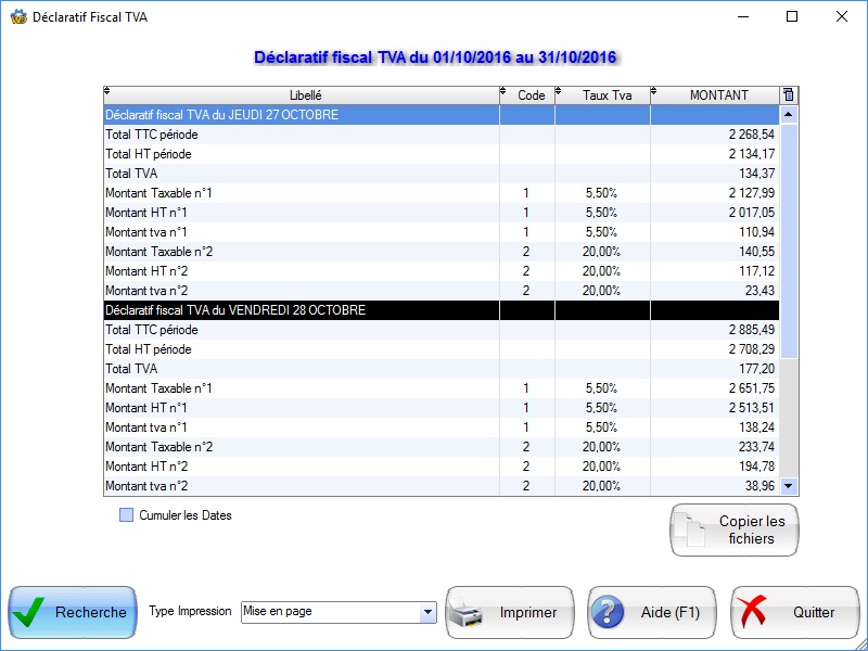 Elle vous affiche a l’écran le détails déclaratif sur la période sélectionnée (attention être au moins à j+1).