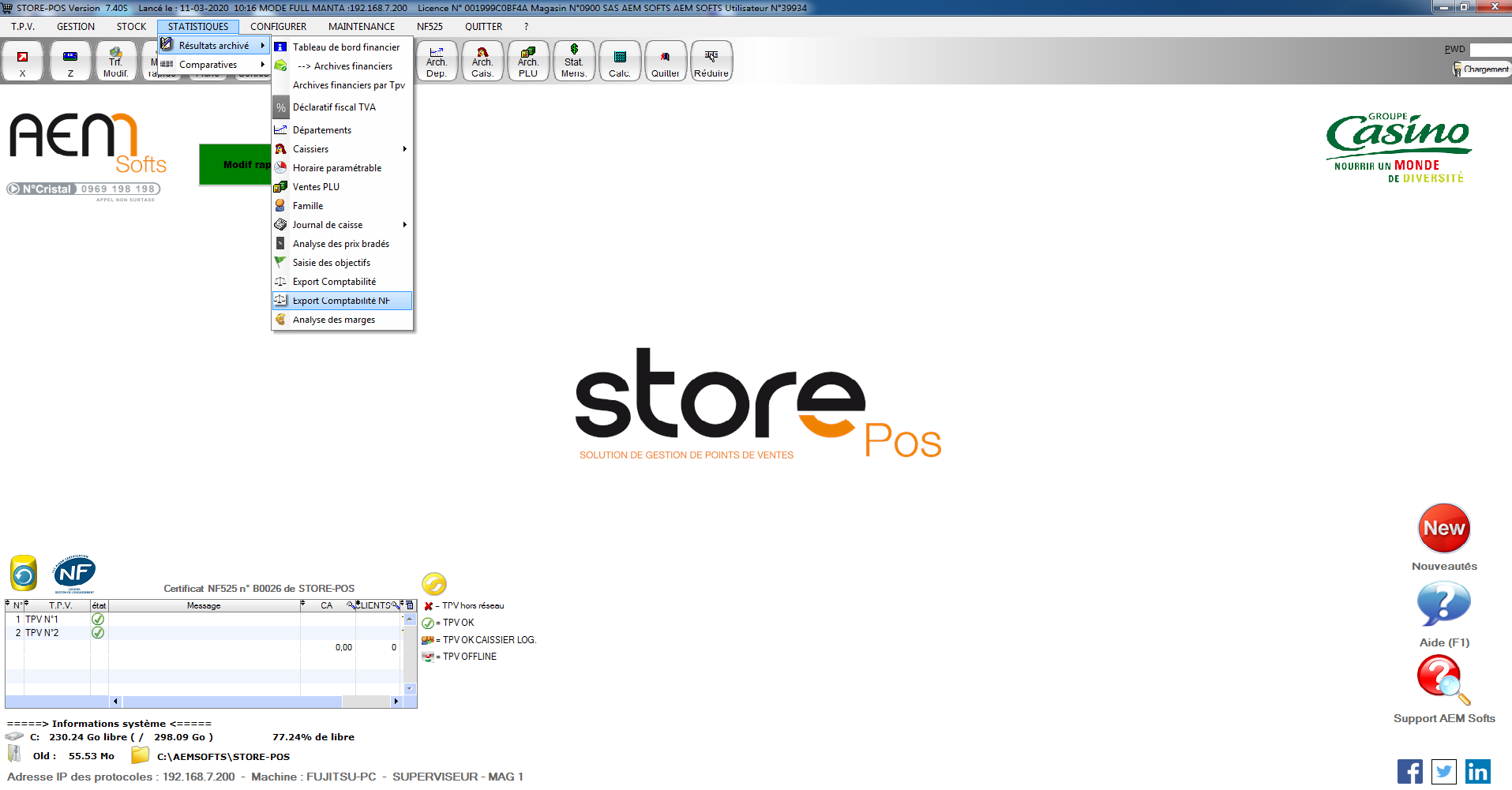 Dans STORE-POS aller sur Statistiques / Résultats archivés / EXPORT COMPTABILITÉ NF