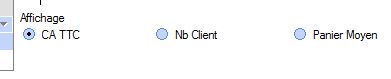 une fois les données affichées vous pouvez choisir la source du graphique affichée. Vous avez le choix entre CA TTC, Nombre de client, Panier moyen.