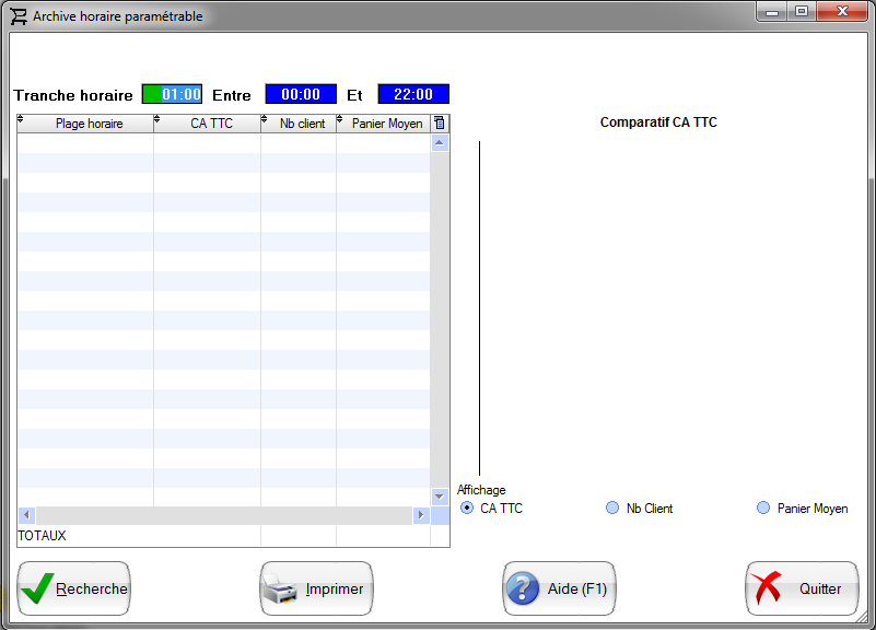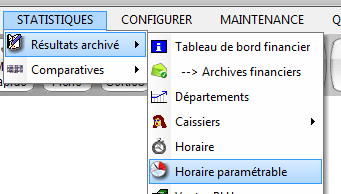 ce menu vous permet d'afficher vos chiffres d'affaire en fonction de tranche horaire de votre choix. vous y accéder à ces données en cliquant sur le menu suivant: