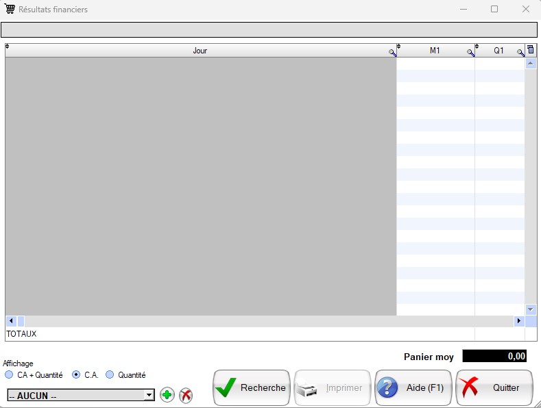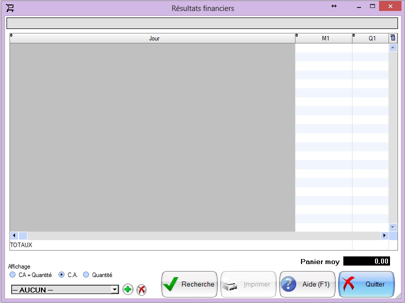 A l'ouverture du Tableau de bord financier la fenêtre suivante s’ouvre mais rien n’est inscris dans le tableau