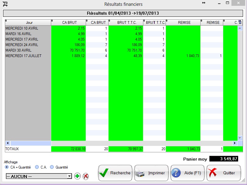 Ce tableau vous permet de consulter plusieurs valeurs sur une période détaillée tel que: