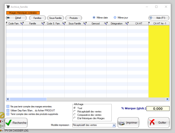 -L'autre section ci-dessous concerne plus l'affichage, pour avoir des statistiques N-1, ou avoir que le récapitulatif des ventes, ou des marges.