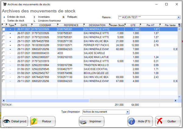 Le menu des « Archives des mouvements » si situe comme ci-dessous :