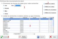 1-Vous arrivez sur le choix de date afin de sélectionner vos bornes de dates 2-Vous pouvez a cet endroit précisez vos critères (entrées, sorties, ….) 3-Avoir plus de précisons par les multicritères du tableau 2 4-Validez votre sélection par le bouton « Rechercher »