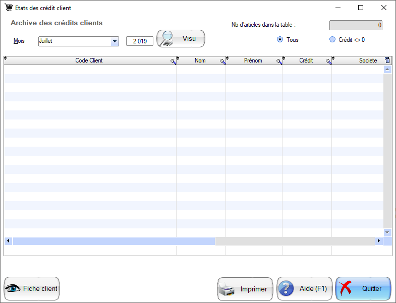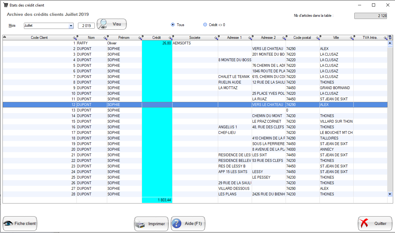 cela affiche les résultats selon la configuration sélectionnée  , à savoir tout les clients existants dans la base de données ou seulement ceux dont le solde est différent de 0