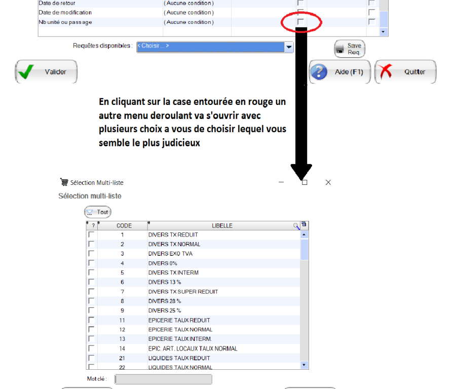 Vous arriverez sur une longue liste avec un menu déroulant les catégories encadrées sont les plus importante