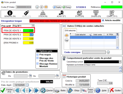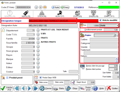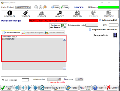 Pour les Produits poids/Prix (Code 02/22:24/26/28 ou 21/23/25/27/29) ou les produits pesés il faut renseigner une unité de vente.