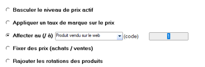 –> sélectionnez l'opération affecter à : Produit vendu sur le web et entrez la valeur 1.