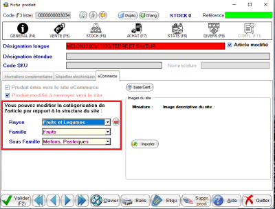 IMPORTANT : : SI LES 3 NIVEAUX DE STRUCTURES NE SONT PAS SAISIS OU LE PRODUIT N'A PAS UNE NOMENCLATURE RECENTE DESCENDUE DE LA CENTRALE, LE PRODUIT NE SERA PAS EMIS VERS LE SITE eCOMMERCE.