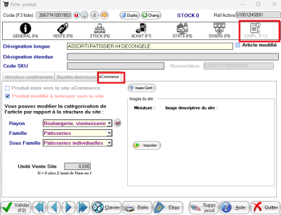 NB : Vous pouvez y accéder à tout moment dans les fiches produit, depuis l'onglet Compléments puis eCommerce :