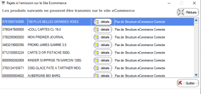 sur chaque ligne, un bouton détails vous permet d'accéder directement à la fiche article, pour renseigner les informations manquantes.