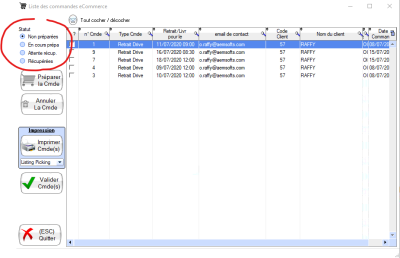 Pour préparer une commande, cochez la dans la liste, puis cliquez sur le bouton Préparer la Cmde.