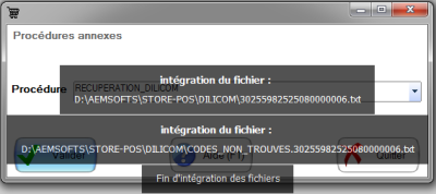 les fichiers générés par vos demandes de référencement sont mis à disposition sur votre compte FEL à la demande quelques minutes après votre demande.(5 à 15 minutes suivant le nombre).  Vous pourrez alors lancer la récupération et l'intégration de ceux-ci dans votre base de données STORE POS en cliquant sur le bouton :