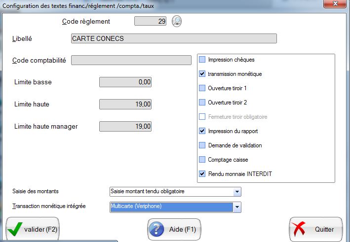 -Pour la mise en place du moyen de paiement conecs, il faut au préalable que le client nous est fournit la carte commerçant pour faire la demande à vérifone.