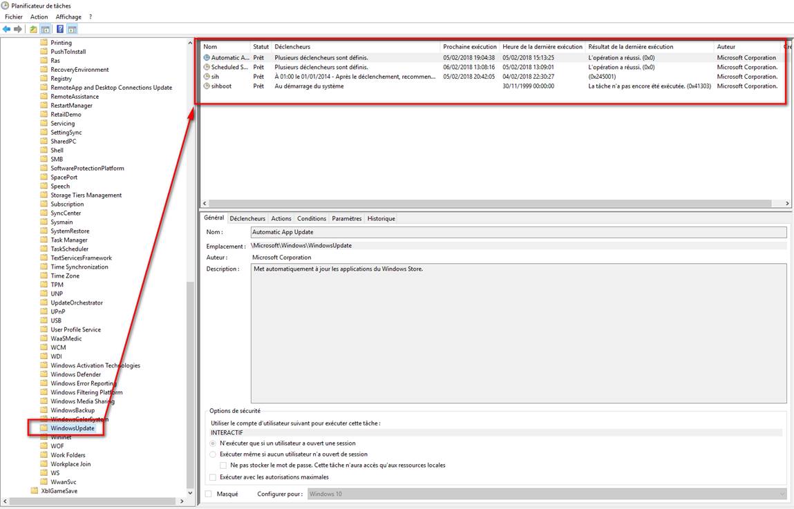 Supprimez les 4 tâches planifiées qui réactivent le service “Windows Update”