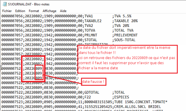 *si un chiffre est faux il faut supprimer le dossier complet du jour en question