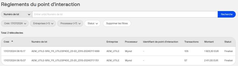 -Une fois connecté, vous avez deux choix de recherche : les transactions ou les historiques de télécollectes.
