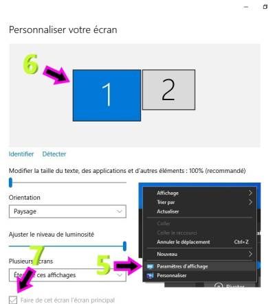 - CLIQUER SUR L'ECRAN 1 PUIS DESCENDER EN BAS DE LA PAGE ET COCHER LA CASE FAIRE DE CET ECRAN L'ECRAN PRINCIPAL