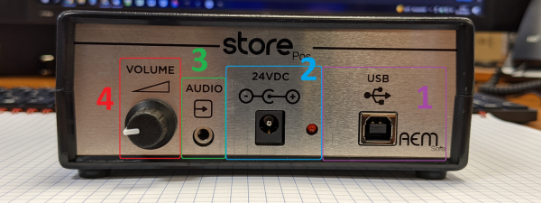 - La prise “AUDIO” ( reliée à la caisse par un câble jack 3.5mm )