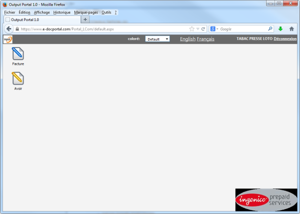 Cela affichera le site de gestion de votre compte Ingenico prepaid:
